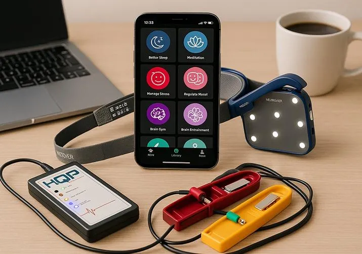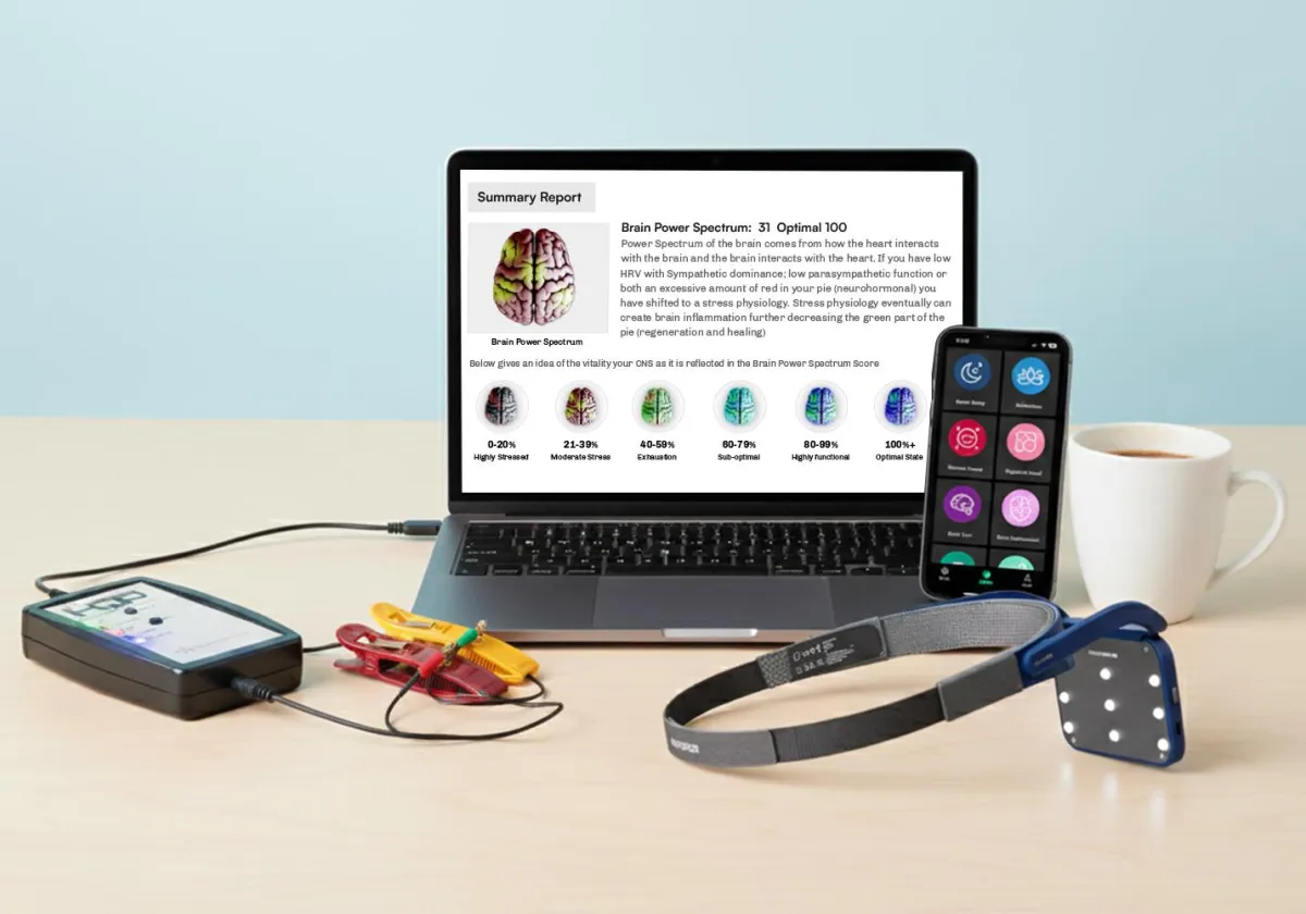 Brain Engagement to create long lasting improvement in Brain Variability, (ability for the brain to change when change is required). Designed to help with better sleep, manage stress, enhance focus and overall brain performance and cognition.